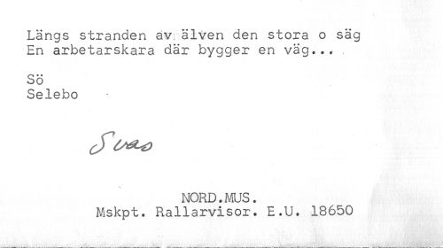 //// Längs stranden av älven den stora o säg //// En arbetarskara där bygger en väg... //// SÖ //// Selebo ////