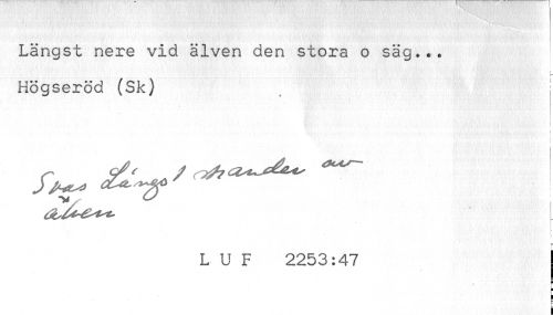 //// Längst nere vid älven den stora o säg... //// f //// Högseröd (Sk) //// i //// t //// ! //// L U F 2253:47 j //// ! //// i ////