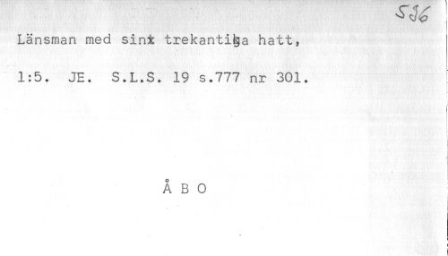 //// Länsman med sini trekantiga hatt, //// 1:5. JE. S.L.S. 19 s.777 nr 301. //// < //// ! //// ! //// ! //// i //// t //// i //// ÅBO //// ) //// t //// i ////