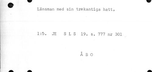 //// Länsman med sin trekantiga hatt, //// 1:5. JE S L S 19. s. 777 nr 301 //// # //// ÅBO ////