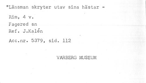 //// "Länsman skryter utav sina hästar - //// Rim, 4 v. //// Fagered sn //// Ref. J.Kålen //// Acc.nr. 5379, sid. 112 //// VARBERG MUSEUM ////