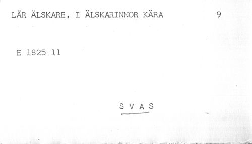 //// LÄR ÄLSKARE, I ÄLSKARINNOR KÄRA 9 //// t //// E 1825 11 //// S V A S ////