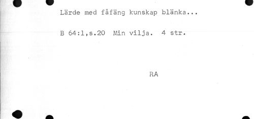 //// Lärde med fåfäng kunskap blänka... //// B 64:1,6.20 Min vilja. 4 str. //// RA ////