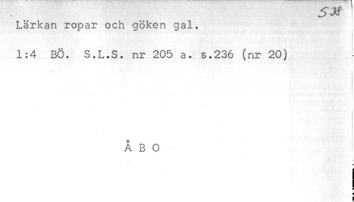 //// Lärkan ropar och göken gal. //// 1:4 BÖ. S.L.S. nr 205 a. s.236 (nr 20) //// t //// < //// ÅBO //// t //// s //// L //// j ////