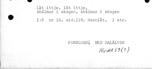 //// Lät ittje, lät ittje, //// skälmar i skogen, skälmar i skogen //// ! ^^ //// ^ 1:8 nr 16, sid.119. Hornlat, 1 str. //// t //// i //// T //// t //// FORS LUND § A4ED DALÄLVEN ////