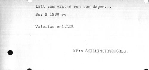//// Lätt som västan ren som dagen... //// Se: E 1839 vv //// Valerius enl.LUB //// ^ KB:s SKILLINGIRYCKSREG. ////
