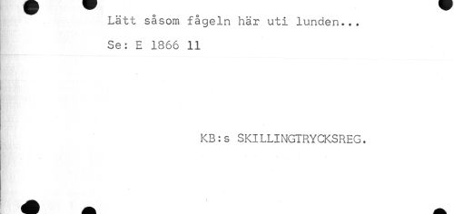 //// Lätt såsom fågeln här uti lunden... //// Se: E 1S66 11 //// - //// KB:s SKILLINGTRYCKSREG. ////