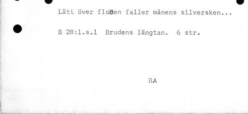 //// Lätt över floBen faller manens silversken... //// * B 28:1.s.l Brudens längtan. 6 str. //// t //// RA ////