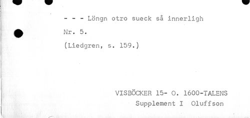 //// < //// - - - Löngn otro sueck så innerligh //// t //// (Liedgren, s. 159.) //// ) //// VISBÖCKER 15- O. 1600-TALENS //// j Supplement I Oluffson ////
