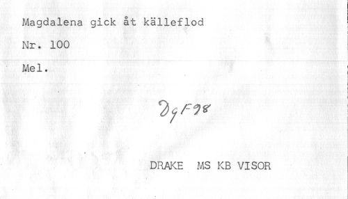 //// Magdalena gick åt källeflod //// Nr. 100 //// Mel. : //// ! //// t //// * //// . //// DRAKE MS KB VISOR ////