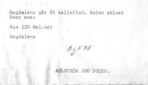 //// Magdalena går åt kalleflod, Solen skiner //// över enen //// N;o 120 Mel.not //// Magdalena //// AHLSIRÖM 300 FOLKV. ////