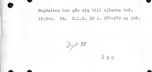 //// Magdalena hon går sig till sjöarna två, //// 16:2+r. PA. S.L.S. 29 s. 277-279 nr 148. ////