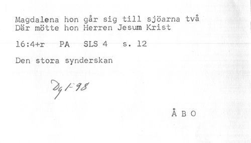 //// Magdalena hon går sig till sjöarna två //// Där mötte hon Herren Jesum Krist //// 16:4+r PA SLS 4 s. 12 //// Den stora synderskan ////