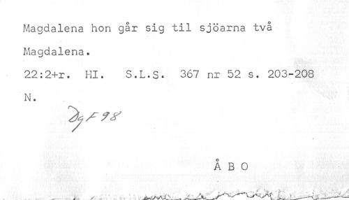 //// Magdalena hon går sig til sjöarna två //// Magdalena. //// 22:2+r. Hl. S.L.S. 367 nr 52 s. 203-208 //// N. //// * //// ÅBO //// * iJ - s - / ^ //// , ^ < ' ' . . Aj ^ . * ___,—^ ——- ////