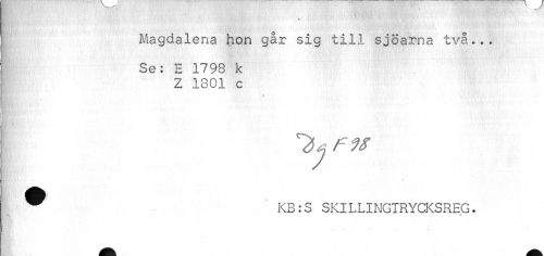 //// Magdalena hon går sig till sjöarna två... //// Se: E 1798 k //// Z 1801 c //// ^ KB:S SKILLINGIRYCKSREG. //// * //// * - " . ////