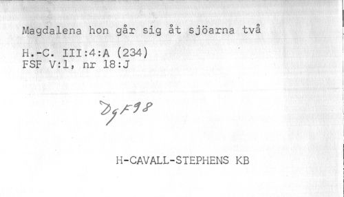 //// Magdalena hon går sig åt sjöarna två //// H.-C. III:4:A (234) //// FSF V:l, nr 18:J ) //// ! //// t //// H-CAVALL-STEPHENS KB //// ! ////
