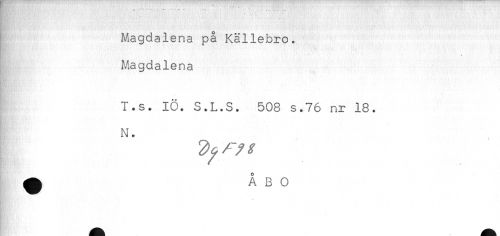 //// Magdalena på Källebro. //// Magdalena //// * //// R - . . //// T.s. IÖ. S.L.S. 508 s.76 nr 18. //// N. //// * ////
