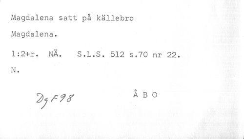 //// Magdalena satt på källebro //// Magdalena. //// l:2+r. NÄ. S.L.S. 512 s.70 nr 22. //// N. //// : <;; ' i < ' <'.* .11.j < << .' - - ,< ,: ' , . <-, . \ 7, ////