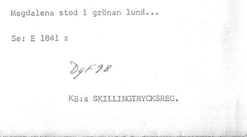 //// Magdalena stod i grönan lund... //// Se: E 1841 z //// KB:s SKILLINGTRYCKSREG. ////