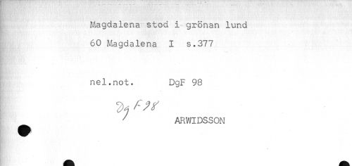 //// - - ' - - ' . - . //// Magdalena stod i grönan lund //// 60 Magdalena I s.377 //// nel.not. DgF 98 //// ^ ARWIDSSON //// ! ^ ////