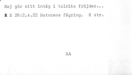 //// Maj gör sitt intag i talrika fröjder... //// g B 28:2;S.22 Naturens fägring. 8 str. //// RA ////