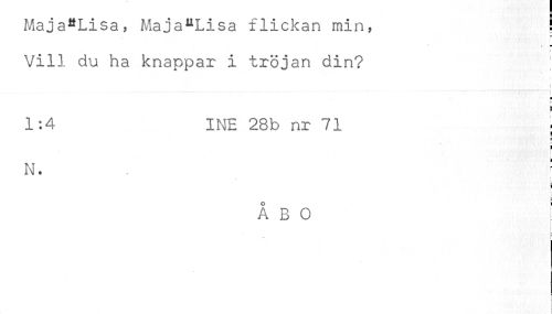 //// Maja*Lisa, Maja**Lisa flickan min, ! //// Vill du ha knappar i tröjan din? //// i- //// 5 //// 1:4 INE 28b nr 71 //// ! //// < //// N. ' //// ÅBO ' ////