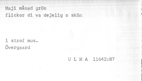 //// Maj i månad grön //// flickor di va dejelig o skön i //// i //// ! //// 1 strof mus. i //// Övergaard ! //// U L M A 11642:87 //// i //// f ////