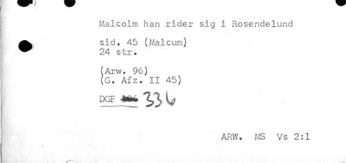 //// Malcolm nan rider sig i Rosendelund //// ^^ sid. 45 (Malcum) //// j ^ 24 str. //// (Arw. 96) //// (G. Afz. II 45) ////