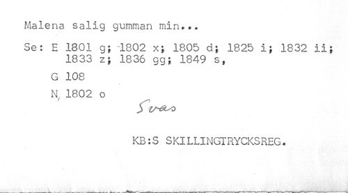 //// Malena salig gumman min,.. //// Se: E 1801 g; 1802 x; 1805 d; 1825 i; 1832 ii; //// 1833 z; 1836 gg; 1849 s, //// G 108 //// N, 1802 o //// y^ta-o //// KB:S SKlLLINGTRYCKSREG. //// _____. ^ ^ ----- — - ^ ^ - -. ___——----—-----——-^r----" ------.. ////