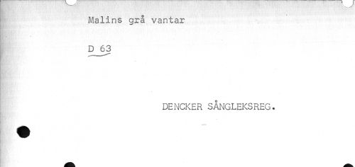 //// Malins grå vantar //// DJ53 //// HBfr^ ' ii ' //// - //// DENCKER SÅNGLEKSREG. //// K'* - //// ^^^ _ ////