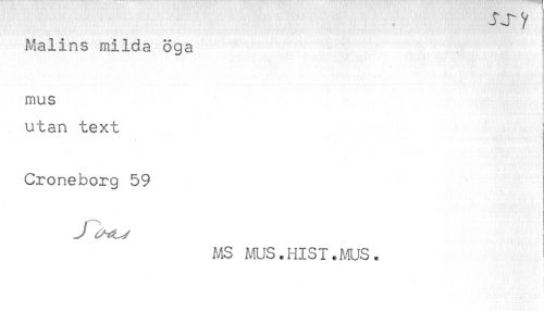 //// jj y //// Malins milda öga //// mus //// } //// utan text //// Croneborg 59 //// MS MUS.HIST.MUS. ////