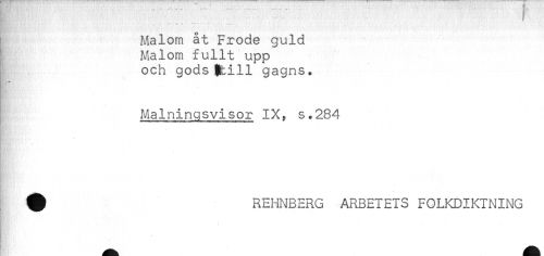 //// , ' . -! * ' —— //// Malom åt Frode guld //// ' Malom fullt upp //// och gods$till gagns. //// Malningsvisor IX, s.284 //// ^ REHNBERG ARBETETS FOLKDIKTNING ////