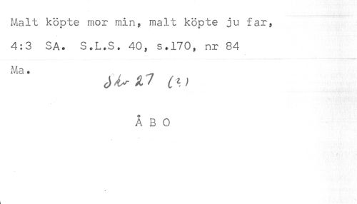 //// Malt köpte mor min, malt köpte ju far, //// 4:3 SA. S.L.S. 40, s*170, nr 84 //// Ma. //// ÅBO ////