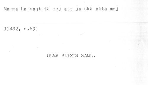 //// Mamma ha sagt tä mej att ja skä akta mej //// 11482, s.691 //// * //// ULMA BLIXTS SAi^^L. ////