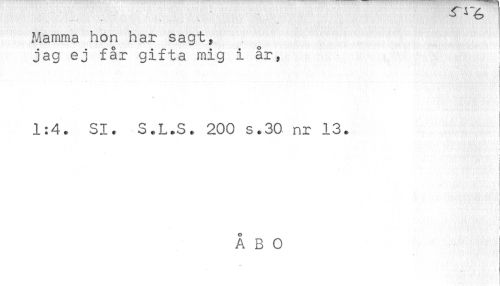 //// Mamma hon har sagt, //// jag ej får gifta mig i år, //// ! //// { //// < //// i //// 1:4. SI. S.L.S. 200 s.30 nr 13. //// t //// < //// t //// i //// ! //// t ////
