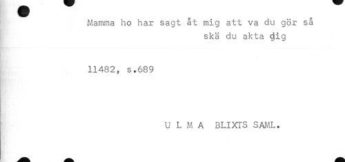 //// Mamma ho har sagt åt mig att va du gör så //// skä du akta <^ig //// Hg'''' //// 11482, s.689 //// ULMA BLIXTS SAML. ////