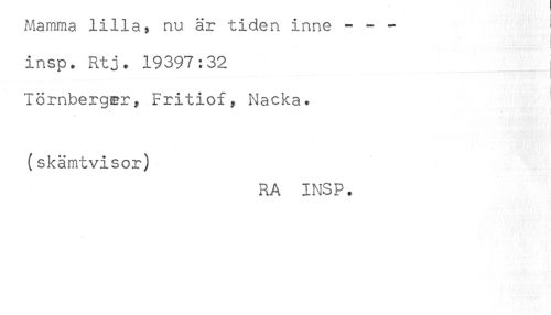 //// Mamma lilla, nu är tiden inne - - - //// insp. Rtj. 19397:32 //// t //// lörnberg&r, Fritiof, Nacka. //// < //// (skämtvisor) //// RA INSP. ////