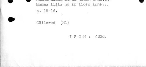 //// Mamma lilla nu ar tiaen inne... //// } $. 15-16. //// " Gällared (Hl) //// I F G H : 4326L ////