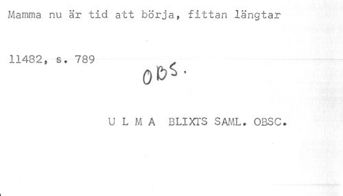 //// Mamma nu är tid att börja, fittan längtar //// 11482, s. 789 //// U L M A BLIX1*S SAA1L. OBSC. //// ; ////