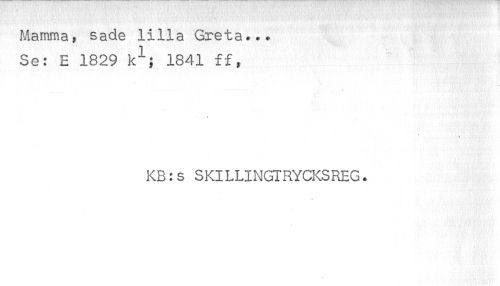 //// Mamma % sade lilla Greta... //// Se: E 1829 k^; 1841 ff, //// ! //// KB:s SKILLINGTRYCKSREG. ////
