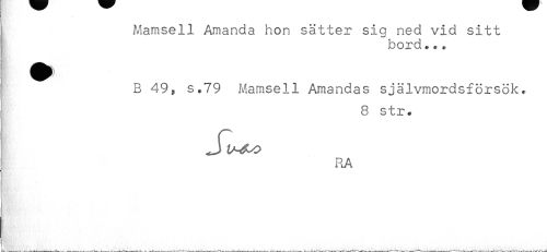 //// Mamsell Amanda hon sätter sig ned vid sitt //// bord *.. //// H K) //// B 49, s.79 Mamsell Amandas självmordsförsök. //// 8 str. //// RA //// '. * - ////