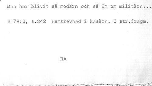 //// Man har blivit sa moaärn och sa öm om militärn*.. //// B 79:3, s*242 Hemtrevnad i kasärn. 3 str.fragm. //// RA ////