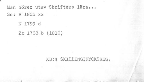 //// Man hörer utav Skriftens lära... //// Se: E 1835 xx //// N 1799 d //// Zz 1733 b (1810) //// KB:s SKILLINGTRYCKSREG. //// ' s V* //// . . ^it .. , - .. .... . ^ ^ . / ... A* ////