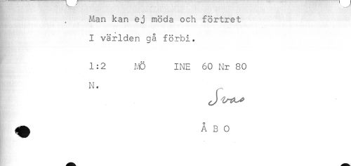 //// Man kan ej möda och förtret //// * * O //// I världen ga förbi. //// 1:2 MÖ INE 60 Nr 80 //// - ////