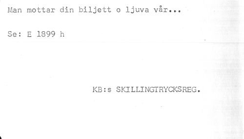 //// Man mottar dm biljett o ljuva var... //// Se: E 1899 h //// . //// KB:s SKILLINGTRYCKSREG. ////