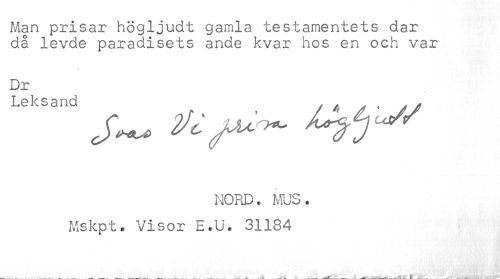 //// Man prisar högljudt gamla testamentets dar //// då levde paradisets ande kvar hos en och var //// Dr //// Leksand . . //// NORD. WS. //// Mskpt. Visor E.U. 31184 //// tstS. .. . — .L... —- — — .A.-.—. . ... . ^ .. .. _ —- - ...... . - ////