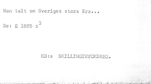 //// Man talt om Sveriges stora ära... //// Se: E 1885 z^ //// KB:s SKILLINGIRYCKSREG. ////