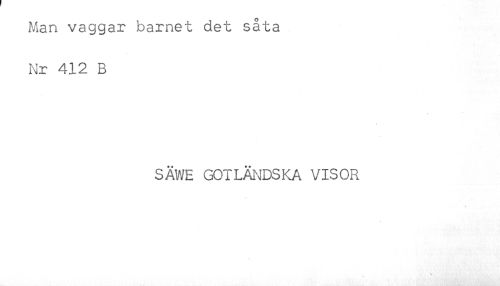 //// Man vaggar barnet det såta //// Nr 412 B //// SÄWE GOTLÄNDSKA VISOR ////