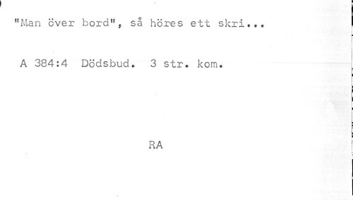 //// "Man över bord", så höres ett skri.,. ! //// A 384:4 Dödsbud. 3 str. kom. //// i //// i //// i //// RA ////