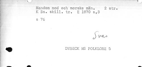 //// Mandom mod och morske män. 2 str. //// i K Bs. skill. tr. E 1870 s,3 //// s 76 //// ^ DYBECK MS FOLKLORE 5 ////